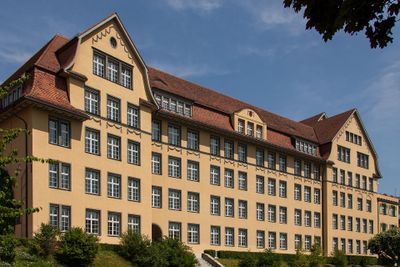 Le bâtiment scolaire, conçu par l'architecte Emil Moser après un concours en 1902, a ouvert ses portes en 1910 comme établissement éducatif pour garçons.