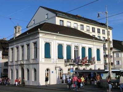 Café Spitz est un restaurant au Mittlere Brücke de Bâle, situé directement sur le Rhin avec vue sur le fleuve. Le bâtiment contient une salle à manger intérieure et une spacieuse terrasse extérieure où les clients peuvent savourer des plats suisses traditionnels et des spécialités de poisson.