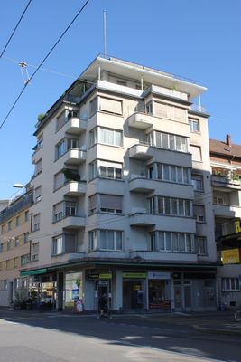 Situé aux 119-121 rue d'Aarberg et 8-10 rue Theodor-Kocher, l'immeuble conserve sa double fonction originale résidentielle et commerciale.