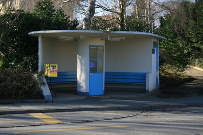 Abribus des transports publics de la ville, Abri de bus patrimonial à Madretsch sud, Suisse.