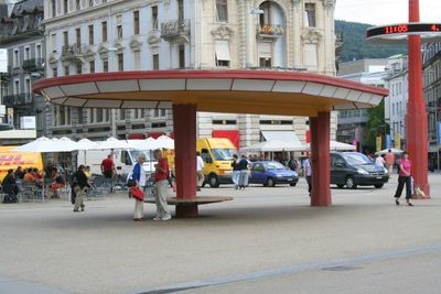 L'abri et le candélabre, construits en 1927, représentent un exemple précoce d'infrastructure urbaine conçue pour les transports publics à Bienne.