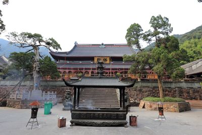 Le Tiantong Temple est un temple bouddhiste construit sur les pentes de la montagne Taibai et compte environ 700 batiments de style Ming relies par des couloirs couverts. Le site comprend de nombreuses salles, pavillons et cours organises avec soin sur le versant de la montagne.
