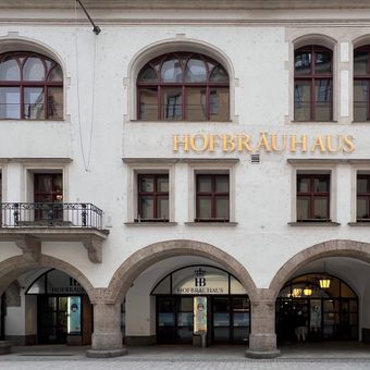 Le Hofbräuhaus am Platzl est une brasserie historique comprenant plusieurs grandes salles dans le vieux centre de Munich. Les pièces présentent des plafonds peints de motifs bavarois, des tables en bois massif et une cour intérieure où l'on joue de la musique chaque jour.