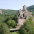 Les éperons montagneux soutenant les deux châteaux créent une configuration architecturale où les fortifications se font face à travers l'étroite vallée.