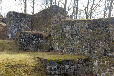 Les fondations du château intègrent des formations naturelles de basalte, illustrant l'adaptation des bâtisseurs médiévaux aux caractéristiques géologiques.