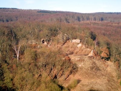 Le Burg Questenberg est une ruine de château près du village de Questenberg dans la région du Südharz, située sur une colline avec des vestiges visibles de tours, de murs et de caves intégrés à la structure. Les restes montrent comment une forteresse médiévale a été conçue pour défendre la région et contrôler le paysage environnant.