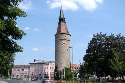La tour conserve une inclinaison permanente dans sa structure, en faisant un des exemples allemands de tours de fortification médiévales inclinées.