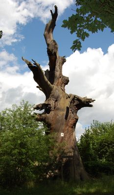 Ce chêne représente le témoignage restant d'une ancienne forêt pastorale où le bétail paissait et les fermiers utilisaient les glands pour nourrir les porcs.