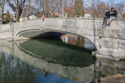 Les lignes d'arcs et les balustrades néo-baroques du pont s'harmonisent avec l'architecture du château de Nymphembourg situé à proximité.