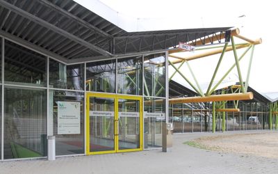 Construite pour les Jeux Olympiques de 1972, cette salle reliée au Stade Olympique par un tunnel souterrain servait de zone d'échauffement aux athlètes.