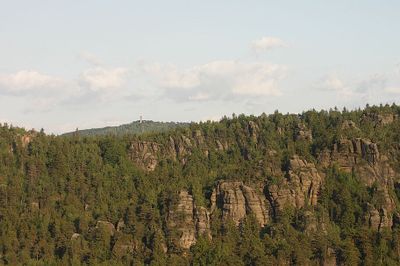 La Jonsdorfer Felsenstadt est une zone naturelle protégée à Jonsdorf avec des formations rocheuses de grès distinctif et des structures géologiques variées. Le site s'étend sur environ 65 hectares et propose plusieurs sentiers établis à travers son paysage accidenté.