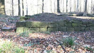 Les ruines du château de Wolfartsweier préservent les fondations et terrassements d'un château-tour du XIIe siècle qui dominait stratégiquement la confluence de la vallée de Wettersbach.
