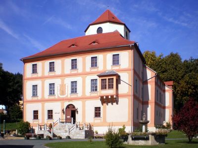 Le château a été documenté pour la première fois en 1261 lorsqu'Albert von Schönberg l'a fondé comme forteresse entourée d'eau. Au fil des siècles, il s'est développé en un domaine régional important avant son expropriation en 1945.