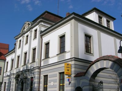 Domplatz 7, zweigeschossige dreiflügelige neubarocke Anlage in Art eines Stadtpalais, der straßenseitige Traufenbau mit Mittelrisalit, Lisenen- bzw. Pilastergliederung, rustiziertem Erdgeschoss und seitlichem Hofportal mit Gangpforte, erbaut 1903