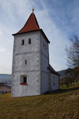St. Laurentius, katholische Filialkirche St. Laurentius, Chorturmanlage 11./12. Jahrhundert, Langhaus 1702 und Folgejahre barockisiert, gedrungener Turm; mit Kirchenausstattung