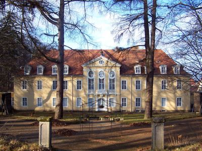 Schloss, zwei Kavaliershäuser, Brunnenskulpturen am nördlichen Ende des Schlossteiches, 11 Putten sowie Skulptur des Bacchus im Ehrenhof vor dem Schloss, zwei Büsten auf Sockeln, Skulpturen der Flora und Diana sowie zwei Brunnen