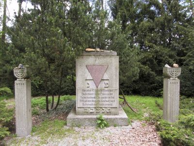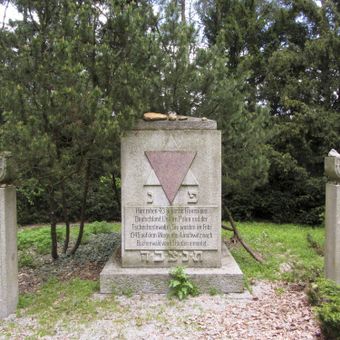 Einzeldenkmal der Sachgesamtheit Jüdische Gedenkstätte für 43 jüdische Frauen: Gedenkstein und zwei flankierende Leuchterstelen Am Chorberg