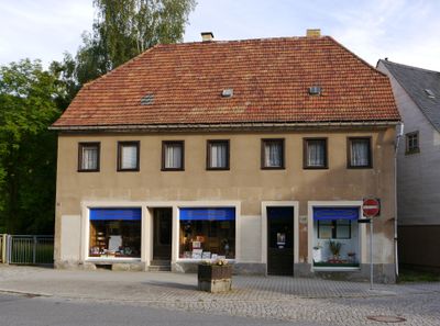 Residential building in open development Lange Straße 24, Upper floor half-timbered, plastered, of importance from the point of view of architectural history and urban development. later store fitting (first floor)