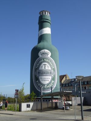 La Bouteille Tuborg mesure 26 mètres de hauteur, construite en forme de bouteille de bière avec un escalier en spirale intérieur.