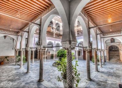 Le Musée des Arts et Traditions Populaires présente des artisanats algériens traditionnels comprenant tapis, bijoux, poteries, costumes et objets en cuivre dans un palais du XVIe siècle.
