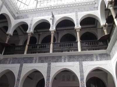 Le Dar Hassan Pacha est un palais du 18ème siècle dans la Casbah d'Alger qui mêle les styles architecturaux maure et néogothique. Ses façades présentent des travaux de carrelage complexes, tandis que l'intérieur contient des cours traditionnelles avec des motifs géométriques.