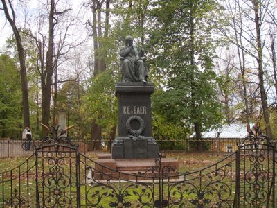 La statue fut inaugurée en 1886 pour honorer Karl Ernst von Baer, qui révolutionna l'embryologie par ses découvertes à l'Université de Tartu.