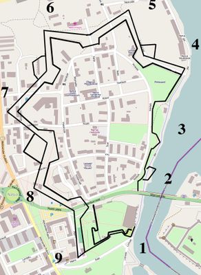 Les noms des bastions - Honneur, Gloria, Victoria, Fama, Triomphe, Fortuna et Spes - reflètent les valeurs militaires de la période de l'Empire suédois.