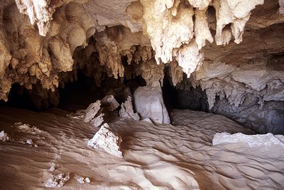 Le sol de la grotte est recouvert de sable désertique, facilitant la navigation, mais les visiteurs doivent apporter un équipement d'éclairage et des casques de protection.
