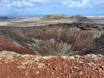 Le sentier circulaire menant au sommet du Calderón Hondo débute au parking de Los Lajares et nécessite environ 45 minutes de marche.
