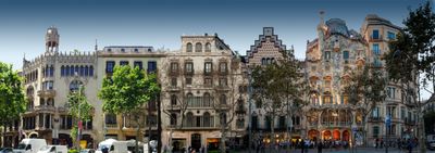 Trois bâtiments modernistes adjacents sur Passeig de Gracia présentent différents styles architecturaux créés par des architectes catalans entre 1898 et 1906.