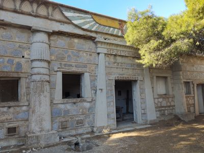 La fortification présente des éléments architecturaux de style néo-égyptien sur les façades des dépôts de munitions et les pylônes d'entrée.