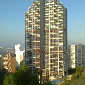 La structure se dresse entre la Plage de Poniente et la Plage de Levante, intégrant des espaces résidentiels modernes aux installations touristiques de Benidorm
