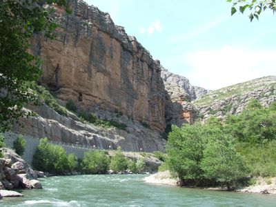 Le Congost de Collegats est un défilé naturel creusé par le fleuve Noguera Pallaresa à travers des falaises calcaires, formant un passage étroit qui s'étend sur plusieurs kilomètres entre deux régions voisines. Les parois rocheuses s'élèvent abruptement en de nombreux endroits, créant un canal profond avec des couches de dépôts minéraux que l'eau a modelés pendant des millénaires.
