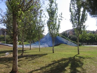 Le parc s'étend sur trois hectares, avec des pentes gazonnées, des chemins en bois et deux murs en céramique à l'entrée principale sur Carrer Almogàvers.