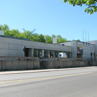 Le musée présente des collections permanentes d'art et de sculptures finlandais dans un bâtiment moderne avec de larges fenêtres et de nombreuses lucarnes.
