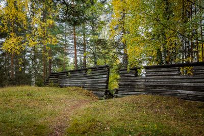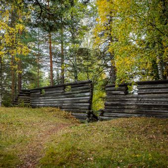 Le site présente des vestiges d'anciens modèles d'établissement finlandais, avec des fondations en pierre et des clôtures en bois reconstruites.