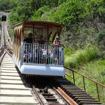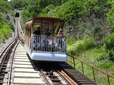 Fonctionnant toute l'année avec des horaires variables, le funiculaire transporte 60 passagers par cabine et gravit une pente de 83 pourcent.