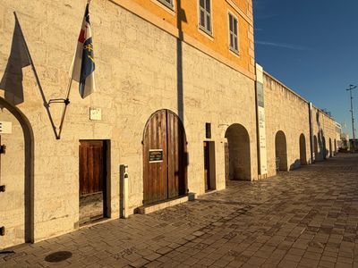 Construite en 1750 comme entrepôt d'outils pendant la construction du port, elle est devenue une prison sous la période sarde puis des bureaux administratifs français.