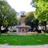 Le Square Louvois présente une fontaine monumentale centrale entourée de marronniers, arbustes et parterres dans un jardin géométrique.