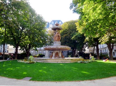 La Fontaine Louvois, conçue par Louis Visconti, présente quatre figures féminines représentant les fleuves français.