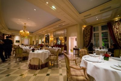 Le restaurant est situé dans un hôtel de luxe et nécessite une réservation préalable pour toute visite. Les clients doivent s'attendre à s'habiller formellement, et y accéder par les transports en commun ou un taxi est le plus pratique étant donné son emplacement au centre de Paris.
