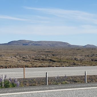 Le volcan atteint 385 mètres d'altitude, présentant de multiples cratères et des champs de lave sur le terrain de la péninsule de Reykjanes.