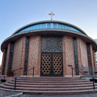 Les quatorze murs intérieurs de l'église représentent les Stations du Chemin de Croix, intégrant le symbolisme religieux dans la conception architecturale.