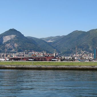 L'aéroport Cristoforo Colombo de Gênes est un aéroport commercial situé sur une péninsule artificielle à l'ouest de la ville, desservant des vols réguliers de passagers vers diverses destinations. L'installation comprend une piste et un terminal conçus pour gérer le trafic aérien régulier.
