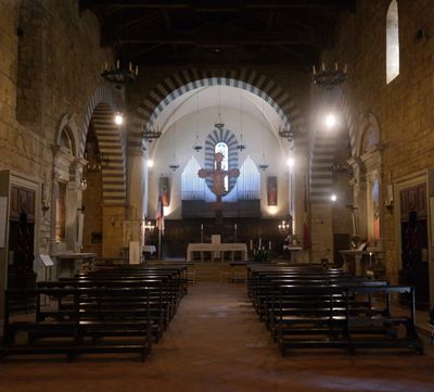 San Fedele est une église romane située au centre de Poppi, caractérisée par des murs de pierre épais, des arcs arrondis et un clocher proéminent. Le bâtiment affiche les traits typiques de la construction médiévale, avec des proportions solides et des éléments décoratifs simples.