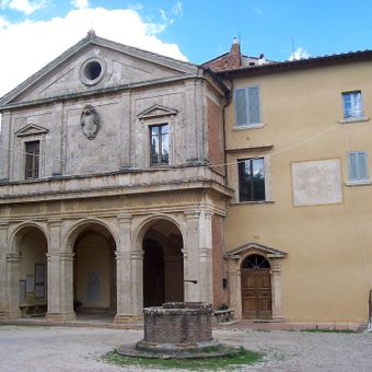 La Santa Maria delle Grazie se dresse dans la ville médiévale de Montepulciano, présentant des éléments d'architecture religieuse toscane et des conceptions intérieures détaillées.