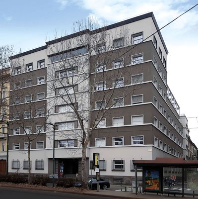 Le Palais Gualino est un immeuble de bureaux de style rationaliste à Turin présentant sept étages le long de la Corso Vittorio Emanuele et cinq rue della Rocca. La façade affiche des lignes géométriques épurées et des fenêtres disposées régulièrement, typiques de cette approche architecturale.