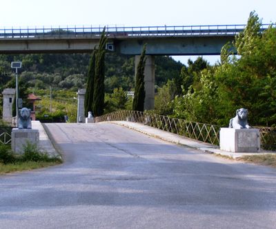Le pont Maria Cristina traverse la rivière Calore avec une structure en béton armé comportant quatre lions en marbre. Deux plates-formes semicirculaires du design d'origine restent visibles dans sa composition architecturale.
