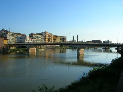 Construit en 1957, le pont remplace les structures précédentes détruites pendant les bombardements de la Seconde Guerre mondiale et relie la Place Guerrazzi au quartier Mezzogiorno.