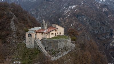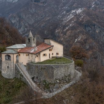 Chiesa di Santa Maria sopra Olcio, Église médiévale à 664 mètres d'altitude à Mandello del Lario, Italie.